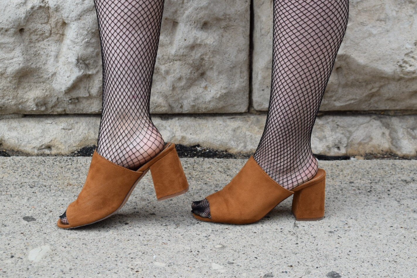 Romper: Zara | Denim Jacket: GAP | Fishnets + Necklace: Forever21 | Mules: Lulus | Watch: DW